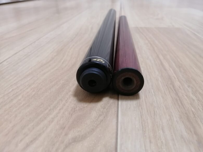 ジョイント部分が金具でしっかり固定されているためほとんど感じませんが一本物のキューと比べると少しだけ押し玉や引き玉の力が弱いように感じます。